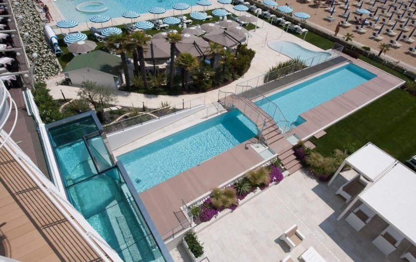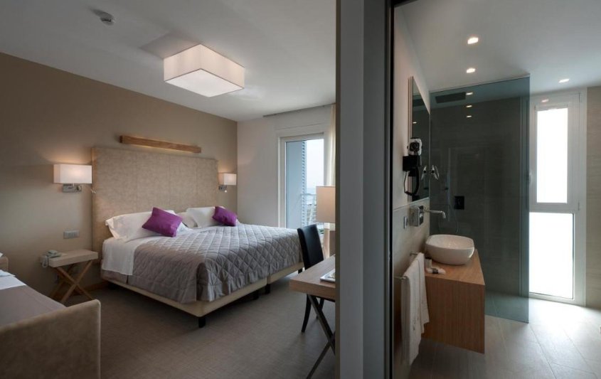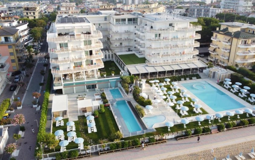 Разположен на 150 метра от Адриатическо море, хотелът предлага Турска баня, гореща вана ,сауна и още много страхотни удобства .Той е удобно разположен, само на няколко метра от крайбрежната алея, пълна с най-модерните магазини, барове и ресторанти в града. В обсега на кратка разходка или още по-кратко пътуване с някой от безплатните велосипеди на хотела ще откриете разнообразие от атракции. Наблизо има тенис кортове, писти за конна езда, голф игрище и аквапарк Aqualand.