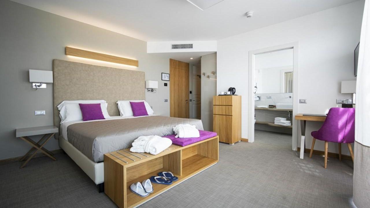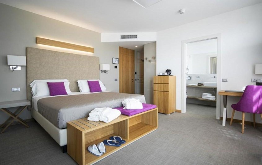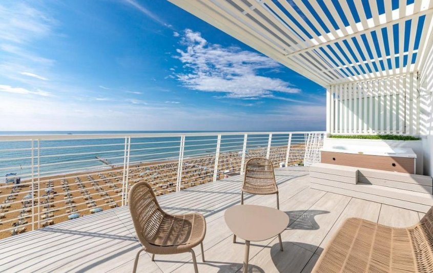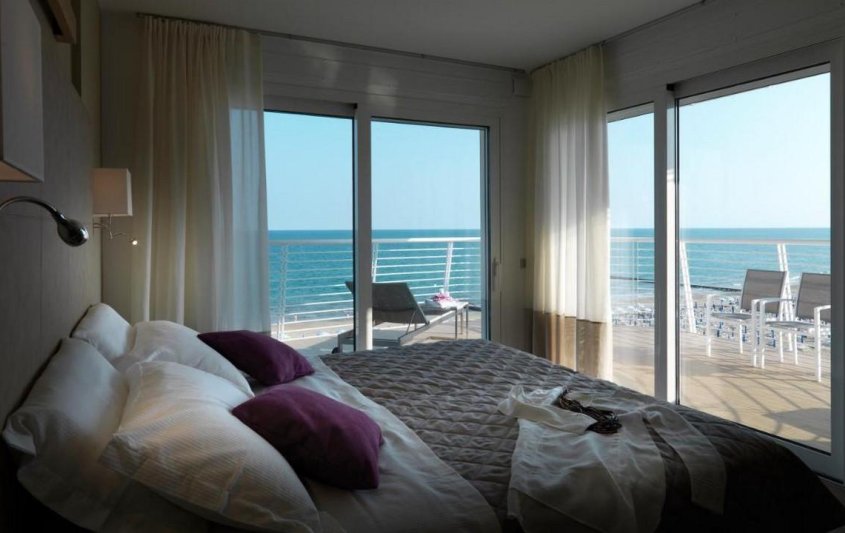 Panorama View представлява най-високото ниво на релаксация и комфорт за вашата почивка в Йезоло.Двойна стая с диван; безплатен Wi-Fi, климатик, баня с тоалетна, душ, сешоар, халат, чехли, хладилник, електрическа кана, сейф, сателитна телевизия.При 4 човека се добавя двуетажно легло.Голяма тераса с джакузи и изглед към морето: 60-64 кв.м.