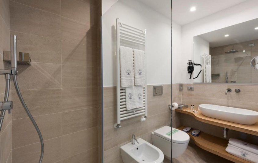 Освен това хотелът разполага с винарска изба с богат избор от вина, за да задоволи всяка нужда.Благодарение на изисканата среда, ресторантът гарантира идеална и внушаваща обстановка, за да се насладите на вкусните менюта.Винарната е едно пътешествие в традицията на винопроизводството, което ще ви позволи да откриете особеностите на най-известните лозя. От “Prosecco dei Colli Trevigiani” до белите вина на “Collio”, от органични вина до “Sassicaia”.