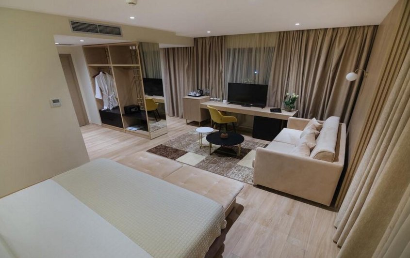 Хотелът предлага разнообразие от луксозни стаи и суити с изглед към морето или градината. Всички помещения са оборудвани с климатик, безплатен Wi-Fi, телевизор с плосък екран, минибар, сейф и балкон. Баните са модерни, с душ кабина или вана, сешоар и безплатни тоалетни принадлежности.