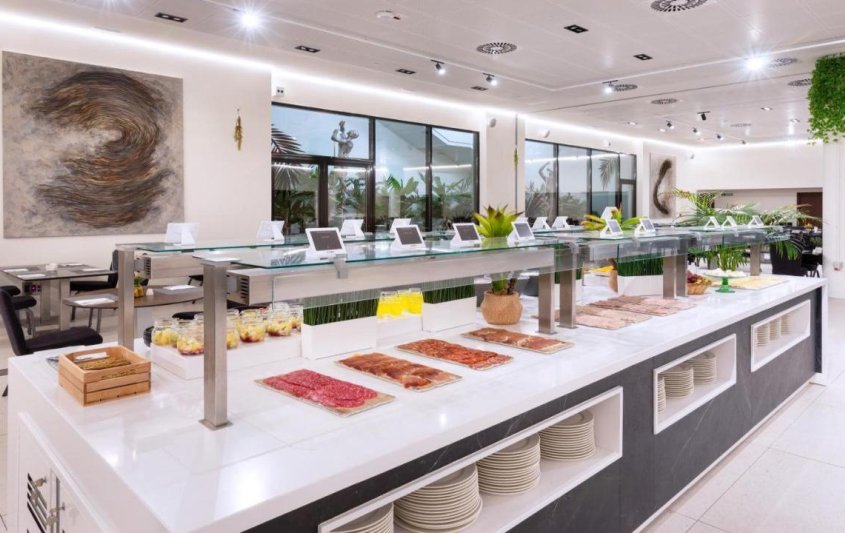 Разполага с бюфет за закуска, основен ресторант и бар.