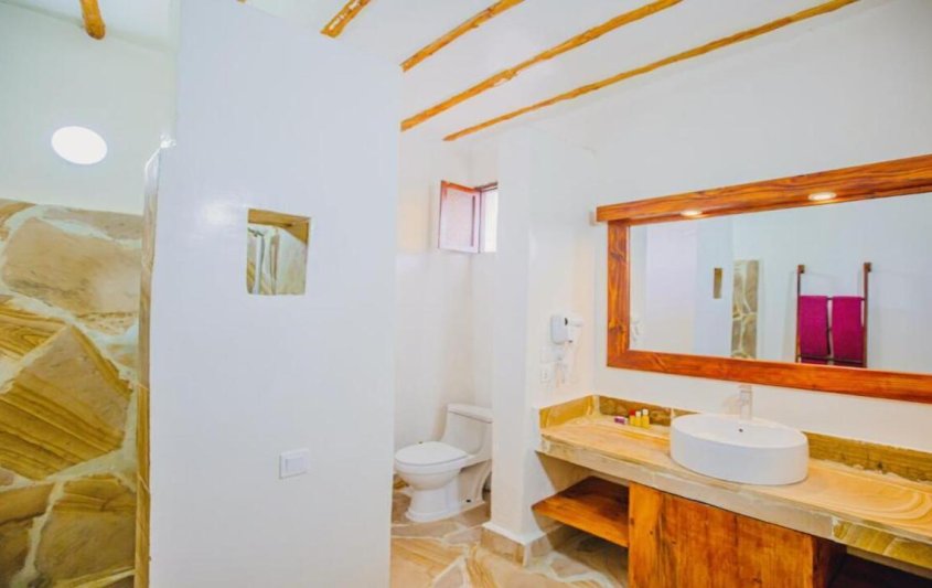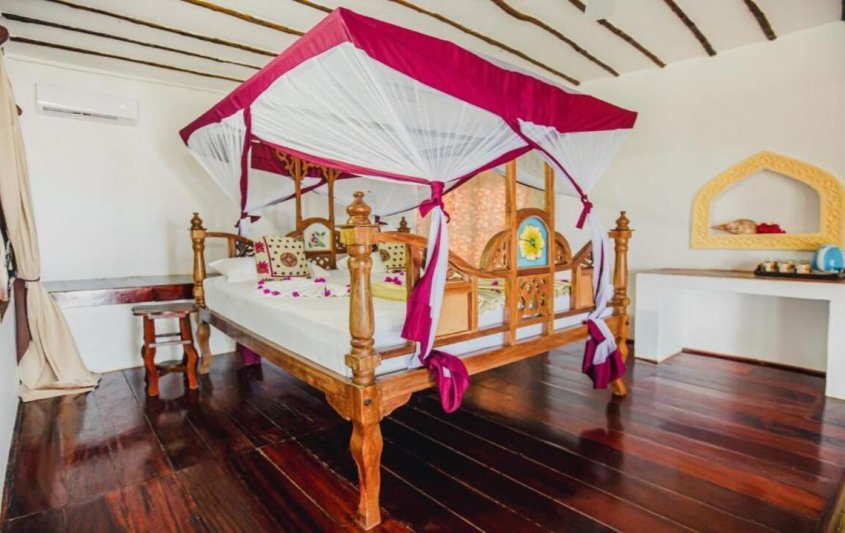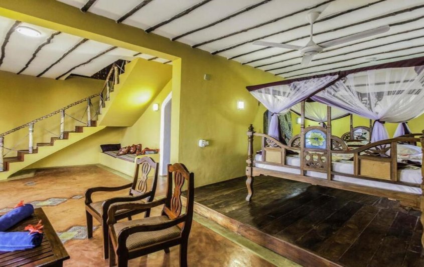 Всички стаи са обзаведени в традиционен занзибарски стил с дърворезба и естествени материали.
