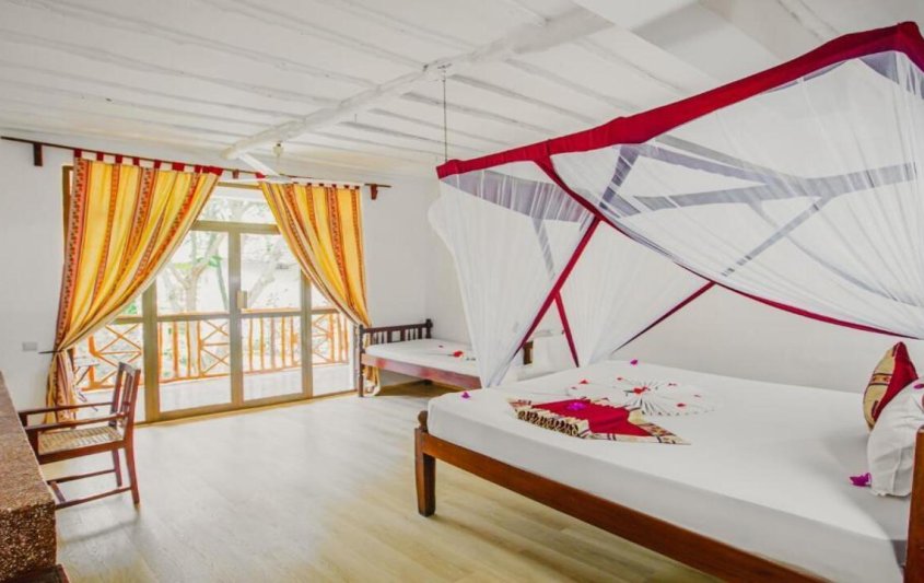 Хотелът предлага елегантни стаи в занзибарски стил, басейн с гледка към океана, спа център за пълна релаксация и разнообразна кухня в ресторантите и баровете си. Идеално място за романтична почивка или семейно бягство сред тропически рай.