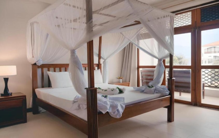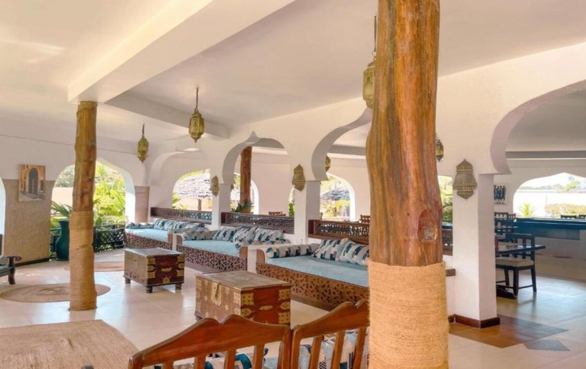 Хотелът предлага елегантни стаи в занзибарски стил, басейн с гледка към океана, спа център за пълна релаксация и разнообразна кухня в ресторантите и баровете си. Идеално място за романтична почивка или семейно бягство сред тропически рай.
