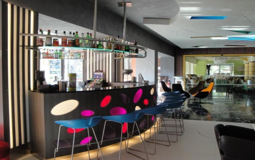Лоби бар с уютна атмосфера, предлагащ разнообразие от напитки