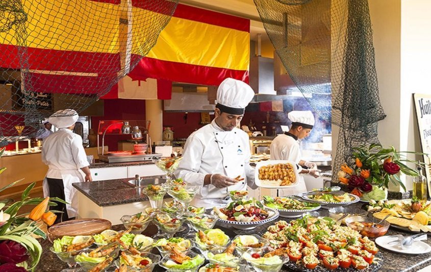 Изхранването е закуска, обяд и вечеря на блок маса с местна и интернационална кухня. Има възможност и за късна континентална закуска на плажа от 10.00 ч. Следобедна закуска се сервира от 15.00 ч. до 17.00 ч. Алкохолни и безалкохолни напитки се сервират от 10.00 ч до 0.00 ч.
