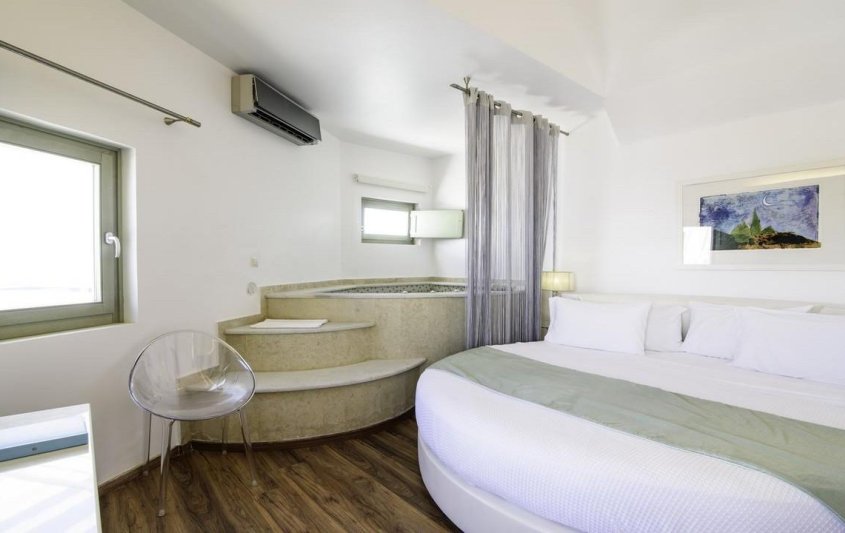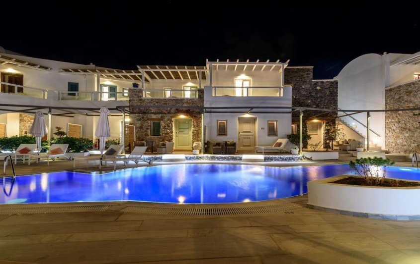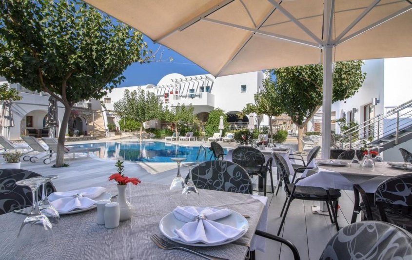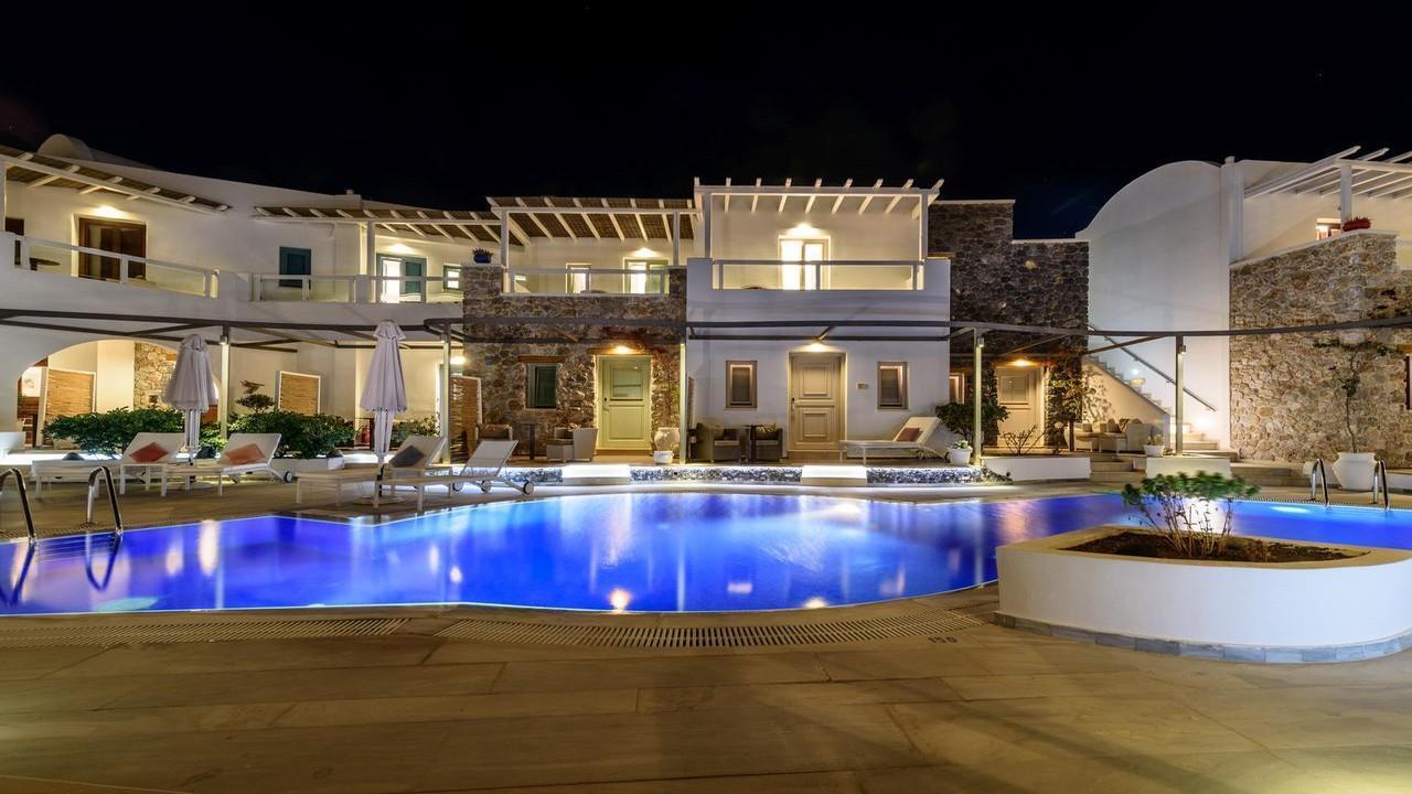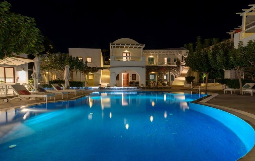Хотелският комплекс се намира на 8 километра от столицата на остров Санторини – Фира, а летището е на 4 километра от хотела. Комплексът е изграден с цел да осигури максимална почивка и комфорт на своите гости и разполага с много удобства и модерни съоръжения. Комплексът е с концепция: САМО ЗА ВЪЗРАСТНИ.