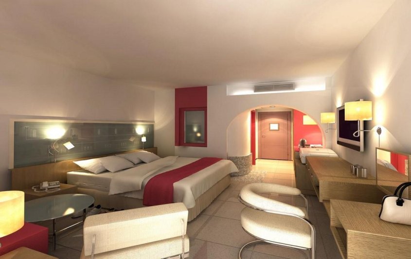 Хотелът разполага с общо 469 стаи, разпределени в 6 корпуса, състоящи се от двуетажни и триетажни сгради, от които Double Room (с изглед към градина/ море/ басейн – 22 м2), Superior Room (с изглед към градина/ море/ басейн – 52 м2), Family Room (с изглед към градина/ море/ басейн – 52 м2), Suite (с изглед към градина/ море/ басейн – 108 м2). Всички стаи са оборудвани с климатик, телевизор, телефон, баня с душ/вана, сешоар, мини-бар (зарежда се с една бутилка минерална вода на човек на ден, безплатно), сейф (безплатно), балкон. Почистване на стаите и смяна на кърпи - всеки ден, смяна на спално бельо - 2 пъти седмично.