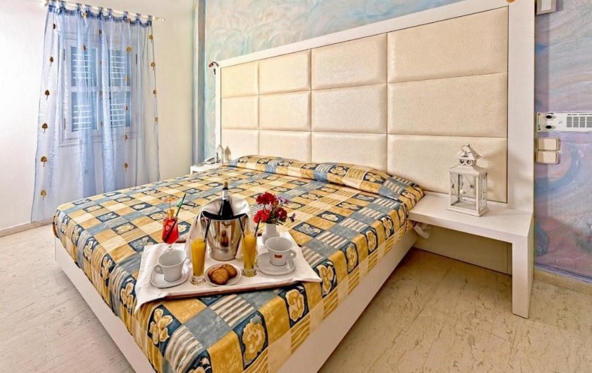 Всички стаи осигуряват комфортно настаняване с отделна спалня, всекидневна и напълно оборудван кухненски бокс. Другите удобства са климатик, плазмен телевизор и сешоар. Всички стаи имат собствен балкон с изглед или към морето, или към басейна, или към древна Тира.