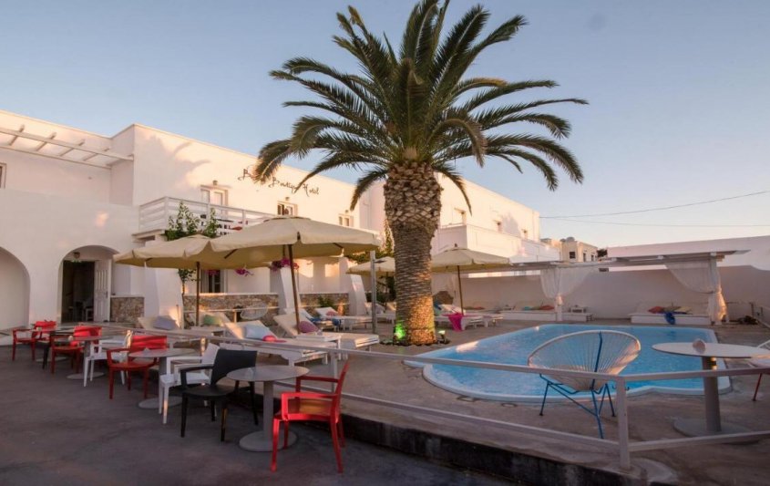 Beach Boutique Hotel изцяло в бяло, стилен, с естетически семпли линии и гладка форма, характерна за цикладската архитектура, предлага усещане за комфорт в своите помещения и релаксация, докато се отнася към своите гости с висококачествени услуги.