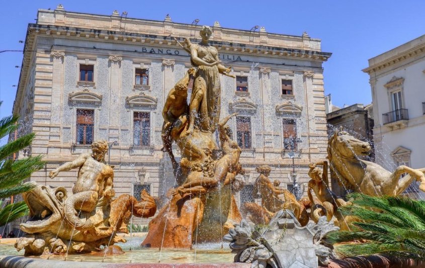 Сиракуза е най-известната гръцка колония в Средиземноморието. Някога описана от Цицерон като "най-великия гръцки град и най-красивия от всички". Това е и родното място на Архимед. Посещение с местен екскурзовод на историческия център, о-в Ортиджа, под закрилата на Юнеско. Пешеходната туристическа програма започва от храма на Аполон – най-старият дорийски храм в Сицилия от 6 в. пр. хр., площад Архимед, площадът „Ил Дуомо” с прекрасната катедрала и църквата „Света Лучия”, където се намира и оригиналът на едно от големите платна на Караваджо „Погребението на Света Лучия”. Обиколката завършва при извора на Аретуза, където ще научите легендата за вечната любов. Свободно време с възможност за разходка с лодка около острова или до морските пещери, посещение на музея на Архимед или музея „Белломо” или разходка в пристанищната крепост на Сиракуза Кастело-Маниаче от 13 в. В ранния следобед се отправяме към Ното, обявен за перфектният бароков град. Истинско бижу на барока, включено в листата на ЮНЕСКО. Туристическа програма с местен екскурзовод по централната улица, от двете страни на която са разположени църквите с манастирите, Катедралата, Палацо Николачи с най-красивите барокови балкони на света. Свободно време с възможност за посещение на Палацо Николачи – имението на богати търговци на риба тон.