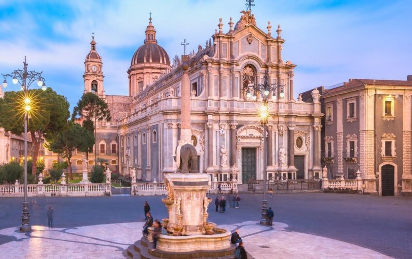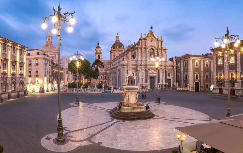 Пешеходна разходка в центъра на Катания: Катедралата; Фонтанът със слона, символ на града; рибния пазар; улица „Етна”, главната търговска улица на града и др. Центъра на Катания е в бароков стил и е под закрилата на ЮНЕСКО, като част от световното културно наследство. Тук има безброй останки от гръцки и римски времена, както и множество барокови църкви и сгради. Не пропускайте и символа на Катания, емблематичния паметник Фонтана на слона, комична статуя от черна лава, показваща усмихнат слон, разположен върху бял обелиск. Статуята е на Piazza del’ Duomo. Катания е идеалното място за любителите на пазаруването. Ще можете да се потопите след безброй магазини за сувенири и вкусотии.