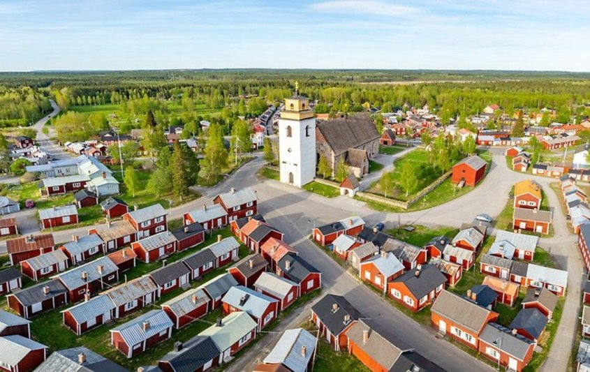 Магията на зимата обгръща всичко – покривите, камбанарията на величествената църква, малките прозорци, зад които някога са светели свещи. Ще усетите пулса на старите времена, ще се потопите в атмосферата на общност, събирала се тук за празници и духовни тържества, и ще почувствате как всяка крачка ви свързва с духа на Северна Швеция.