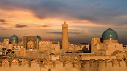 Сред акцентите са комплексът Пои Калон, живописният район Ляби Хауз и пазарите в уникалните покрити търговски куполи на Бухара. Вечерта – вечеря в стария град и продължение на разходката из очарователните улички.